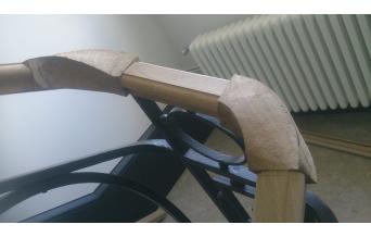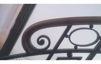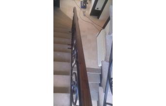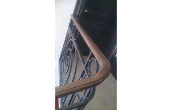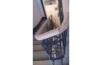 Création d'une main courante en noyer. Fabrication des morceaux tourné en atelier et toupiller sur place